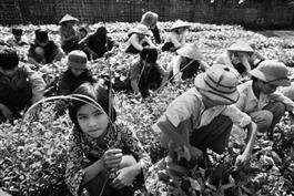 VIETNAM. School children tending to a bed of saplings before transplanting. The country's reforestation program has afforded the opportunity to reaffirm the tradition of living symbiotically with nature that defines the people of Vietnam.