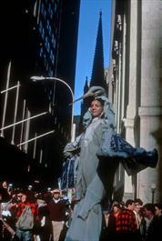 USA. New York City. 1979. Demonstrators, one costumed as bird...