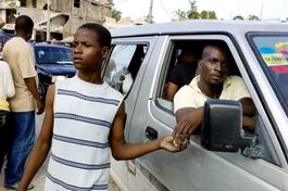 HAITI. Port-au-Prince. September, 2011. At a bus station on...