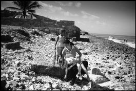 CUBA, Havana. February 2, 2008. A family in the beach of La Puntilla, on the outskirts of Havana.