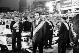 EGYPT. Mansura. April 22, 2012. Members of the Muslim Brotherhood provide security at a stadium in the city of Mansura before an appearance by the Brotherhood's Presidential candidate Mohammed Mursi.