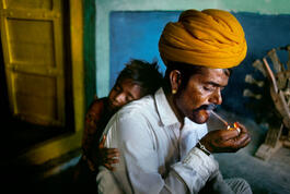 INDIA. Jodhpur, Rajasthan. 1996. A father and son in their home.