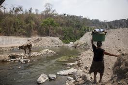 EL SALVADOR. Suchitoto. 2013. Washing laundry in River Quezalapa.