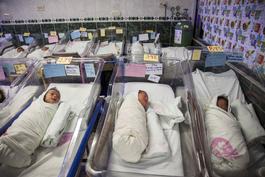 EL SALVADOR. San Salvador. May 1, 2013.Newborns at the ISSS Hospital.