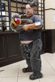 OldFreek with his babboon puppet in the hotel lobby. 2012.