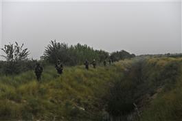 AFGHANISTAN. August 16, 2009. Afghan soldiers and Marines return to base after a firefight with the Taliban.