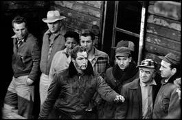 USA. Hoboken, New Jersey. 1954. American actor Marlon BRANDO during the filming of "On the Waterfront" directed by Elia KAZAN.