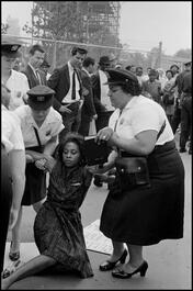 USA. Brooklyn, Bedford Stuyvesant Area. 1963. Civil rights demonstrations in the North and South for jobs,equality,housing,schools and civil rights.The law says demonstrators obstructing traffic will be jailed.