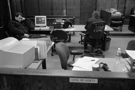USA. New York City. 100 Centre Street Criminal Court Building. Lawyer's from the Legal Aid Society wait for night court to begin.