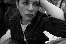 USA. New York City. 2001. Julianna MARGULIES in Central Park.