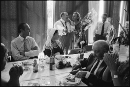 FRANCE. 1982. Correze. Egletons. Jacques CHIRAC (on the left), Mayor of Paris, president of the RPR Party and deputy in the Correze region, at a banquet. With him is his wife Bernadette (standing in the center).
