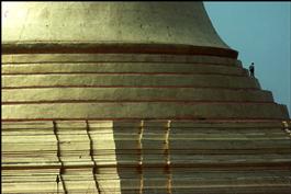 BURMA. Yangon (Rangoon). A man walking along one of the roofs of the temples of Swedagon's pagoda. 1977.