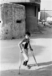 LEBANON. Beirut. Sabra and Chantila Camp. A young boy crippled...
