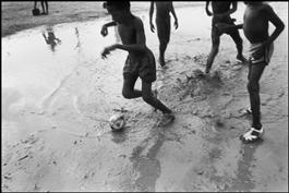 Western Africa. MALI. Bamako. Boys playing football after the monsoon season. Wednesday 3rd October, 1984.