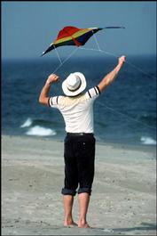 NEW ENGLAND.kite flyer on Plum Island beach in Mass.