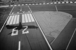 USA. Florida. 1993. Plane landing at Miami Airport runway.