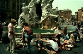 Italy, Rome. Youth at the Bernini fountain in Piazza Navona.