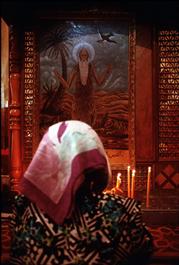 EGYPT. 1997. The St Paul Copt Monastery, desert of the Red Sea. Prayer at copt mass.
