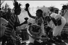 MEXICO. Mexico City. 1998. Intellectuals clean their musical instruments with smoke before singing and dancing in honor of the Virgen de Guadalupe.