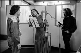 FRANCE. Paris. 6th arrondissement. "Un drame musical instantane" by Dee Dee BRIDGEWATER (vocals) and the Quatuor BALANESCU : Alexander BALANESCU (violon I), Claire CONNERS (violon II), Andy PARKER (viola), Mick COOPER (cello), Bernard VITET (trumpet), Jean-Jacques BIRGE (composer, producer). Here, Jean-Jacques BIRGE, Dee Dee BRIDGEWATER and Bernard VITET rehearsing before the recording of "Priere de Sarajevo" in the Acousti studio. Tuesday September 13th, 1994.