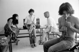 FRANCE. Provence-Alpes-Côte d'Azur region. Var department. Ollioules. Châteauvallon festival "Musique ouverte" first edition. Pupils of the saxophone workshop, new saxophone improvisation techniques, led by French jazz musician Jean-Louis CHAUTEMPS (saxophone). Saturday, August 21st 1976