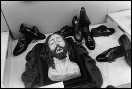SPAIN. Sevilla. 1996. Holy week. The head of Jesus is displayed in a shop window during the Semana Santa.