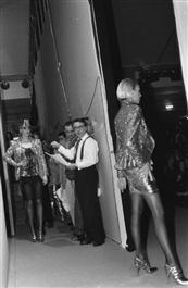 FRANCE. Paris. October 1994. French fashion designer Christian LACROIX presenting his "1995 Spring Summer Collection of Ready-to-wear" clothes. Lacroix is seen here behind stage with Jacques PICART (glasses and jacketless) his associate.