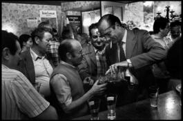 Correze. Jacques CHIRAC (on the right), president of the RPR Party, visiting his constituency of the Correze region. He stopped in a local bar to have a drink with some voters.