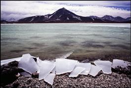 BOLIVIA: Lagunas coloradas region: Iced landscape in green lake.
