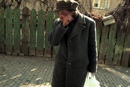 ROMANIA. Bucharest. 1999. Homeless man waits for MSF assistance.