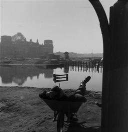 Berlin, a worker relaxing in front of the Reichstag.