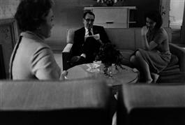 USA. New York City. 1958. Romy SCHNEIDER with her mother, Magda, in their hotel discuss the day's programme.