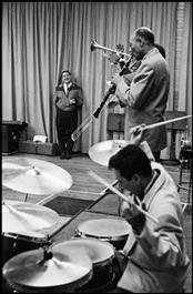 USA. New York. 1958. Trombonist Jack TEARGARDEN (left) during a television appearance.