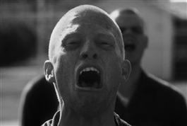 USA. Parris Island, South Carolina. 1970. Recruits shout "yessir" in response to the drill sergeant's orders.
