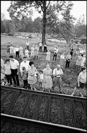 USA. New Jersey. 1968. Trackside scene as Robert F. Kennedy funeral train passes on the way from New York to Washington.