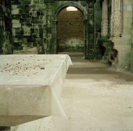 SPAIN. Galicia. The Monastery of Sobrado de los Monjes, on the northern trail was once an important resting place for pilgrims, it has decayed over many years,and inside the church foliage sprouts from the roof. The altar is covered with bird droppings. 1998.