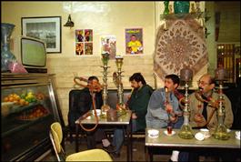 IRAN. Tehran. 1998. Tea house in popular neighborhood where men...