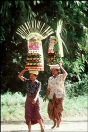 INDONESIA. Bali. Near Sanur. Offering are taken in procession to the Hindu temple. 1989.