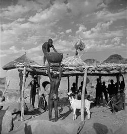 SUDAN. Kordofan. Women spreading beans out to dry in the sun. They are laid on mats high above the ground to kepp them away from the goats. 1949.