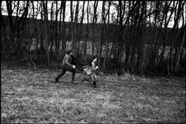 FRANCE. Franche-Comté. Husband chasing his wife in a field. 1975...