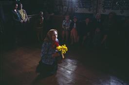 Grabarka. West of Warsaw Interior of orthodox church with pilgrims praying.