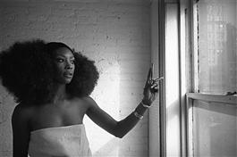 Harlem, New York. A model who celebrates the afro and the slogan...