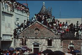 Montego Bay, crowds await visit of Queen Elixabeth II.1983.