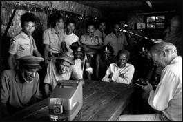 INDONESIA. Irian Jaya. 1989. Dani watch themselves in the film "Dead Birds" (1959) with indonesian police behind them. At right: Robert GARDNER.