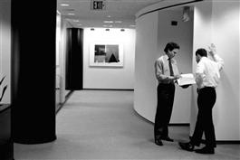 USA. Massachusetts. Boston. Business conversation in corridors of financial advisors Bain & Co.