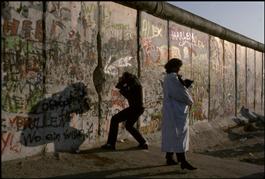 GERMANY. November 1989. West Berlin. A man in a leather jacket photographs a chipped-away section of the Berlin Wall.