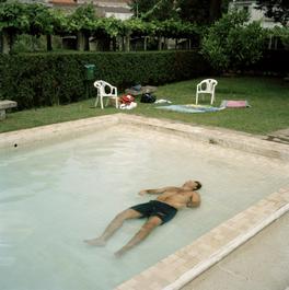 SPAIN. Galicia. The hot spring of Caldas des Reas south of Santiago. A man enjoying a mineral water pool. 1998.