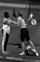 England. Peter CORDICE and Marcus ABIGAIL. One-armed athletes preparing for the Paralympics.