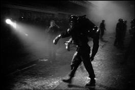 FRANCE. Paris. Boulevard St. Germain. May 6th, 1968. CRS carrying a hurt friend on his shoulder in the night.