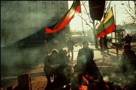 LITHUANIA. Vilnius. Citizens guarding the parliament against the Soviet troops. 1991.